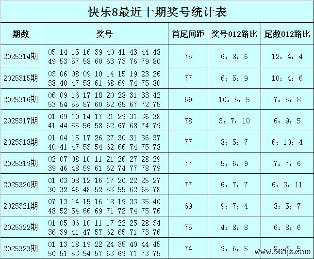 福彩直率8第2025323期开出奖号:01 13 18 19 22 24 35 40 44 45 50 51 53 54 57 63 69 71 73 75,其中奖号012路比为9:6:5,余数012路比为8:7:5。